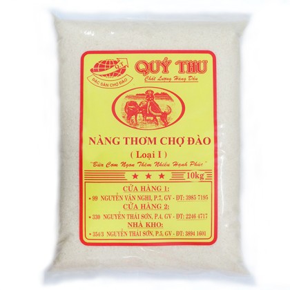 NÀNG THƠM CHỢ ĐÀO LOẠI I Tên sản phẩm: Nàng Thơm Chợ Đào Loại I Vùng trồng: Đồng Bằng Sông Cửu Long Đặc tính : Nở tơi xốp nhiều, mềm cơm trắng hạt, ít dẻo , vị ngọt thơm cơm. hạt cơm trắng đục ngon mắt (đặc biệt: hạt cơm vẫn giữ được độ ngọt thơm và mềm cơm khi để nguội) Đóng gói: 5kg/10kg Bao bì: nền vàng chữ đỏ viền đỏ Giá phục vụ: 22.000đ/kg * Khi mua 10kg gạo sẽ được tặng một món quà bất kỳ * Giao hàng: - Miễn phí giao tận nhà các quận Gò Vấp, Bình Thạnh, Phú Nhuận, Tân Bình. - Các quận 1, 2, 3, 4 ,5 ,10, 11, 9, 12, Thủ Đức, - Vui lòng thêm phí ship 20.000 vnđ - Các quận 6,7,8, Bình Tân - Vui lòng thêm phí ship 30.000 vnđ - Bảo quản: + Để nơi khô ráo và thoáng mát + Đậy kín sau khi mở bao, tránh côn trùng xâm nhập và mùi lạ. - Cách nấu: + Đong gạo theo nhu cầu + Vo gạo vài lần bằng nước sạch + Chế nước theo tỉ lệ: 1 kg gạo / 1,1 lít nước + Không mở nắp nồi trong lúc nấu cho đến sau khi cơm sôi được 15 phút - Đặc điểm sản phẩm: · Đảm bảo độ thuần chủng. · Giữ được hương vị đặc trưng của từng sản phẩm. . Không sử dụng hương liệu tạo mùi, đảm bảo hương thơm tự nhiên đặc trưng của từng loại gạo. · Không sử dụng chất bảo vệ thực vật ngoài danh mục, thuốc trừ sâu, thuốc diệt côn trùng · Bảo quản sản phẩm đúng kỹ thuật. · Không pha trộn các loại gạo với nhau. Mẹo nấu cơm ngon - Mẹo nấu cơm ngon - Mẹo nấu cơm ngon